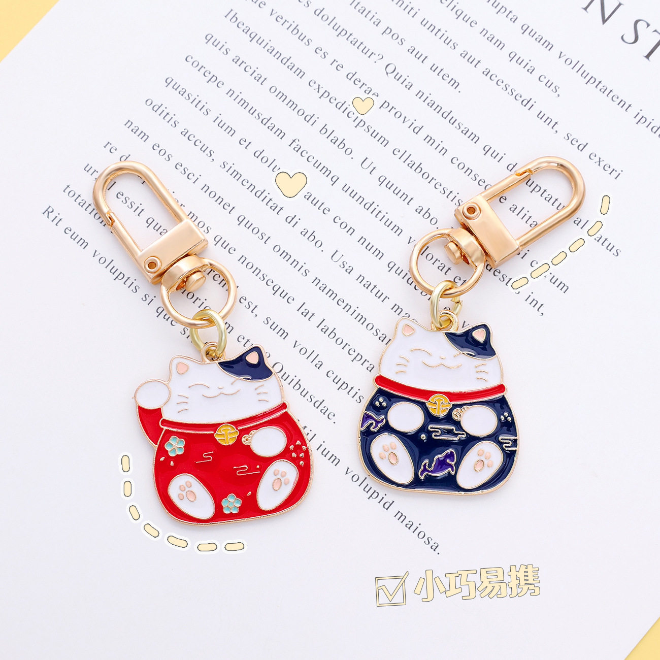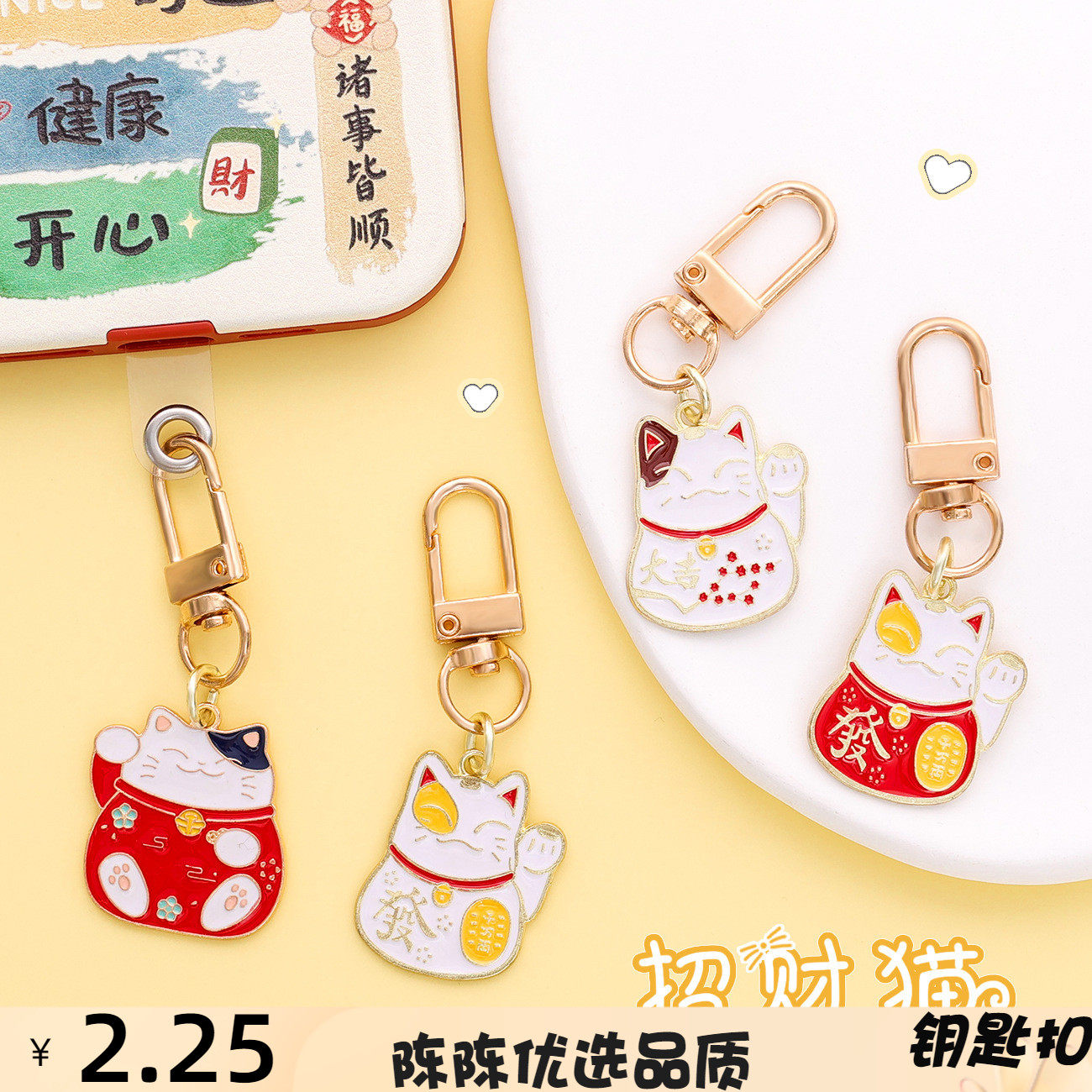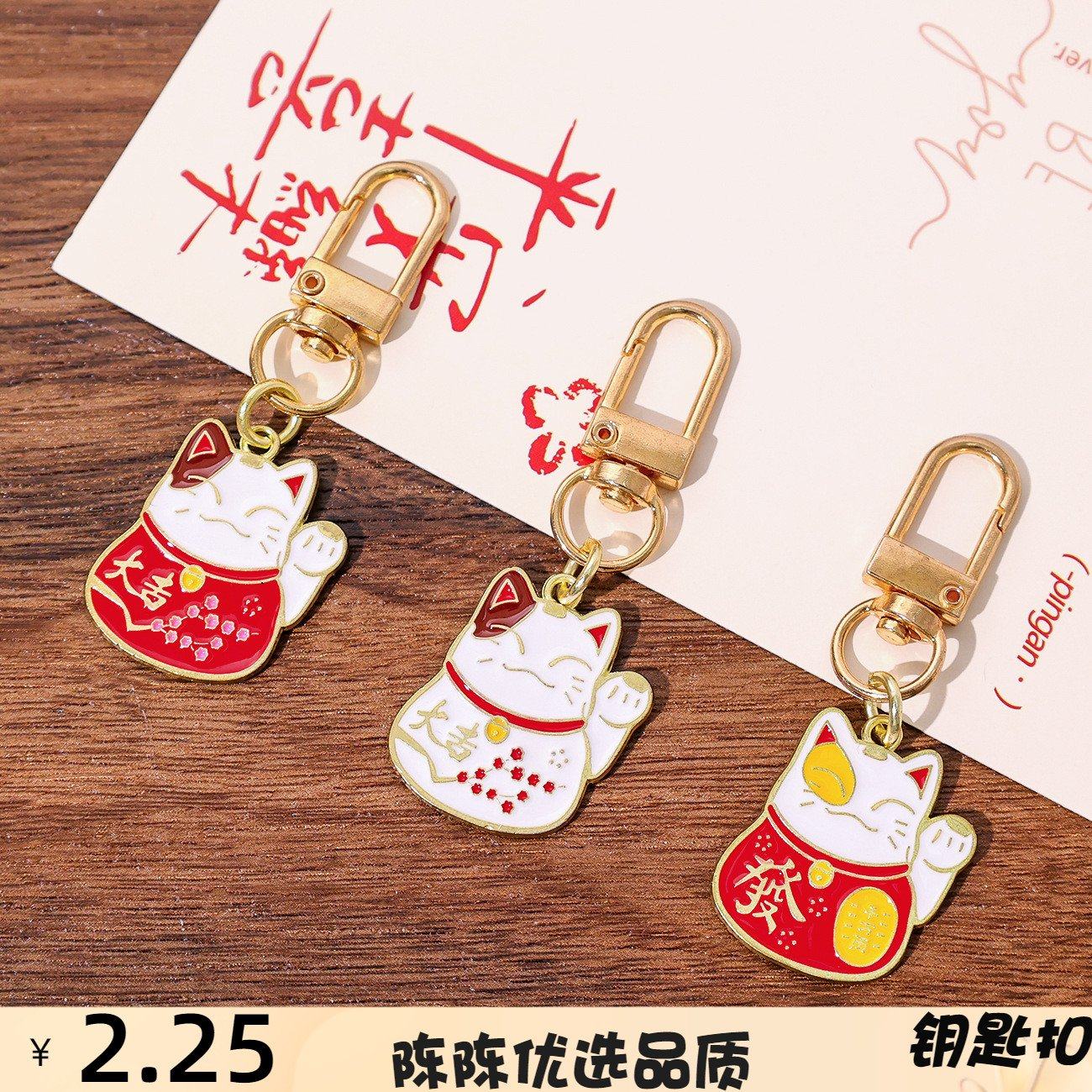 📚 中国风金属招财猫卡钥匙扣配件可爱创意精致包挂件钥匙链礼品