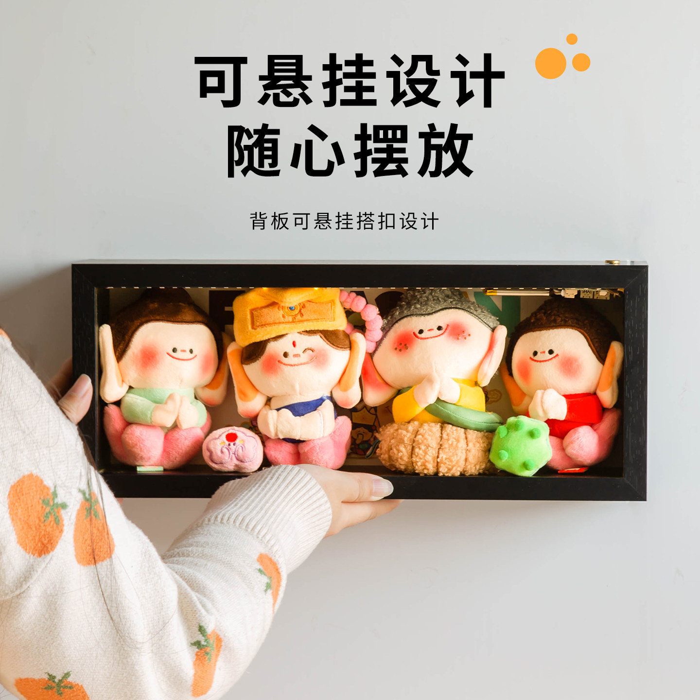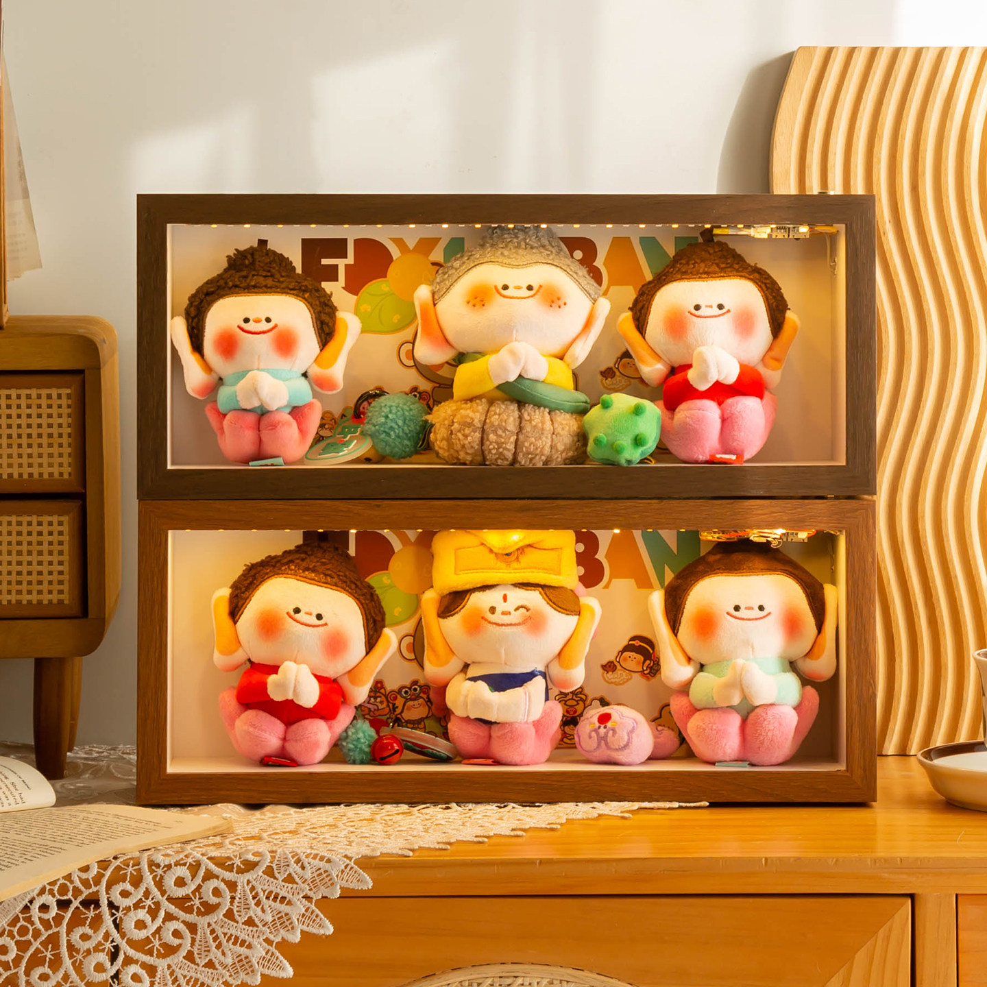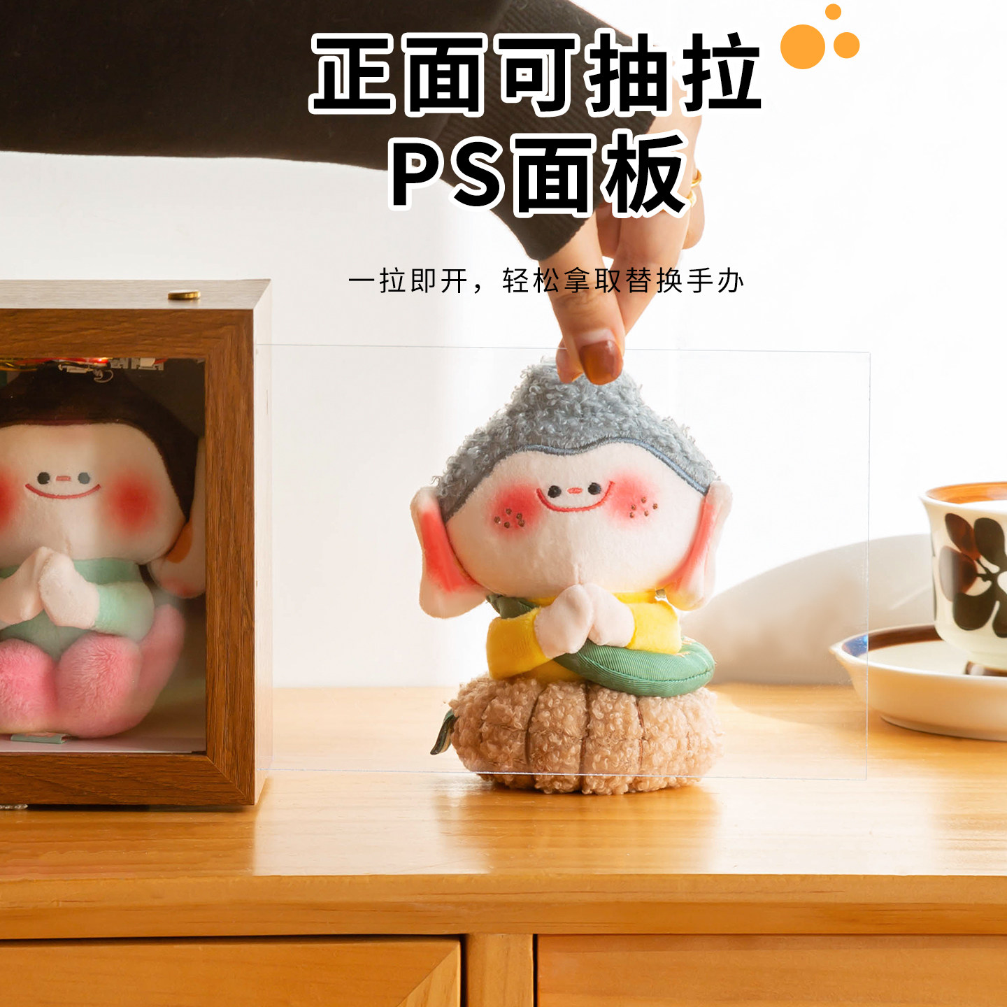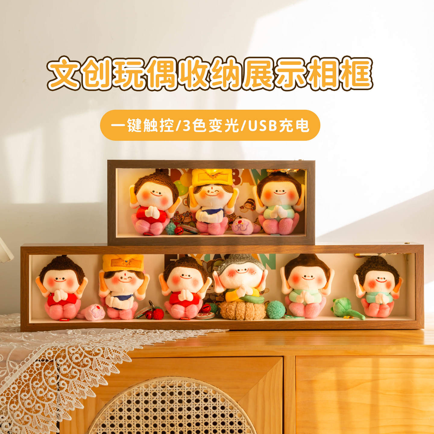 📚 文创毛绒玩具盲盒佛小伴挂件收纳盒防尘展示盒触摸充电带灯相框