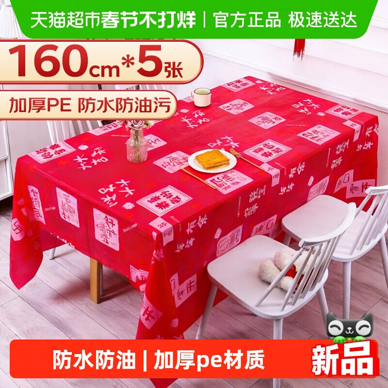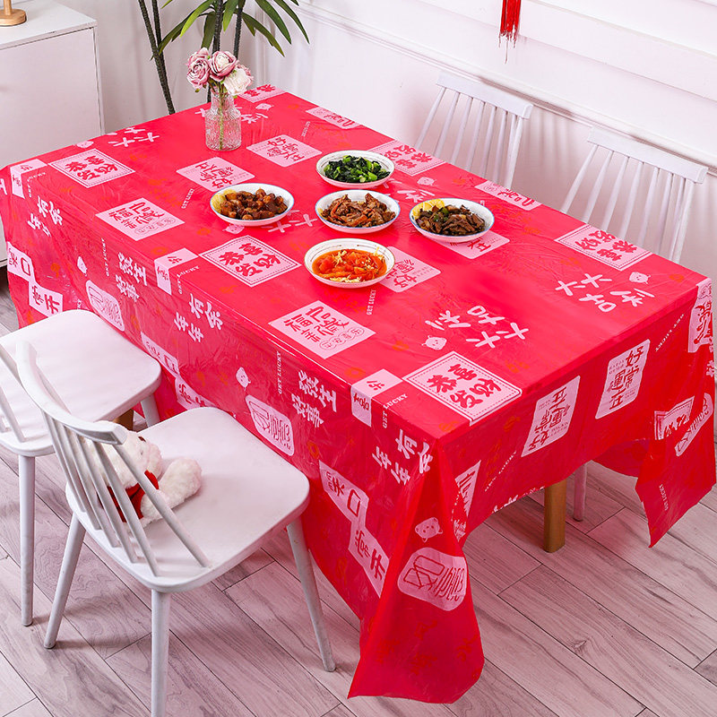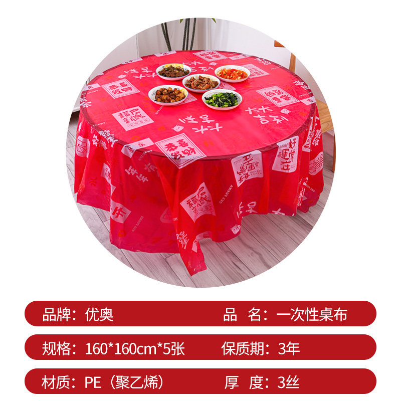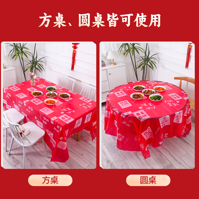 📚 优奥一次性桌布如意红色台布加厚塑料台布喜庆新年方圆桌餐布5张