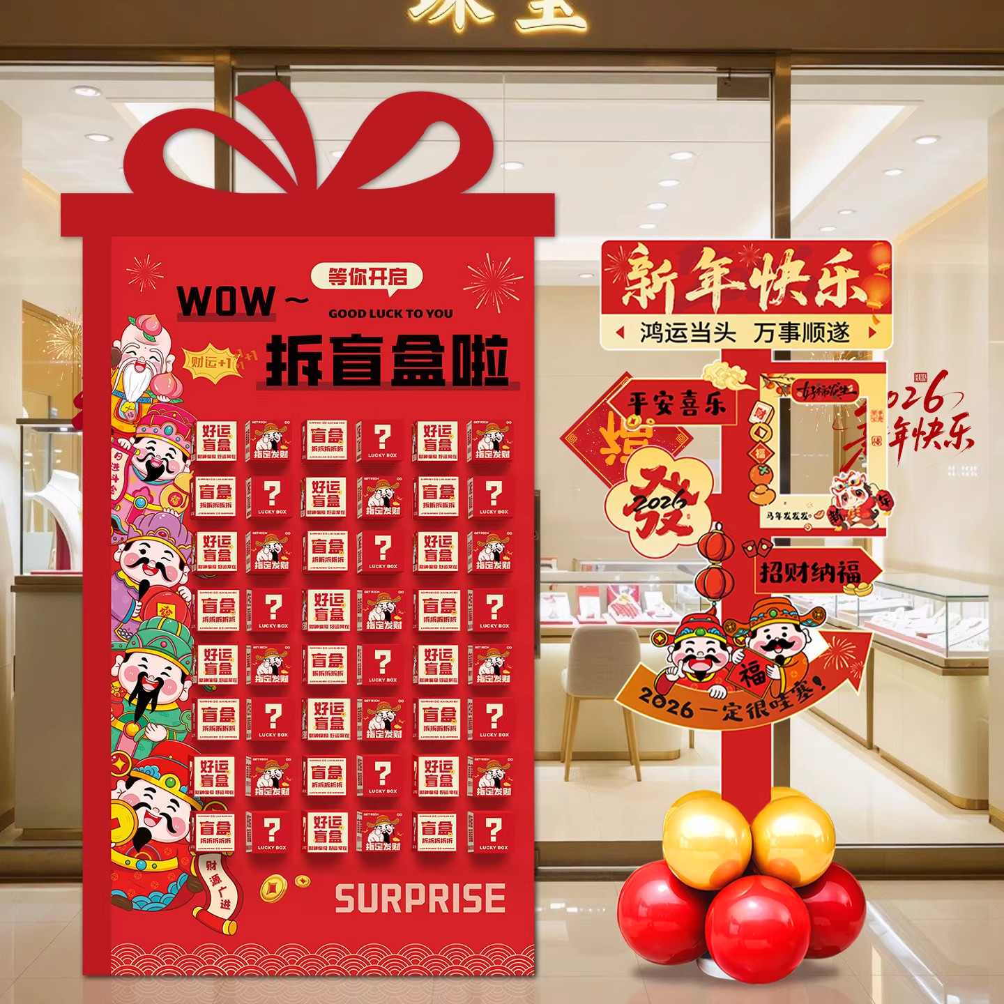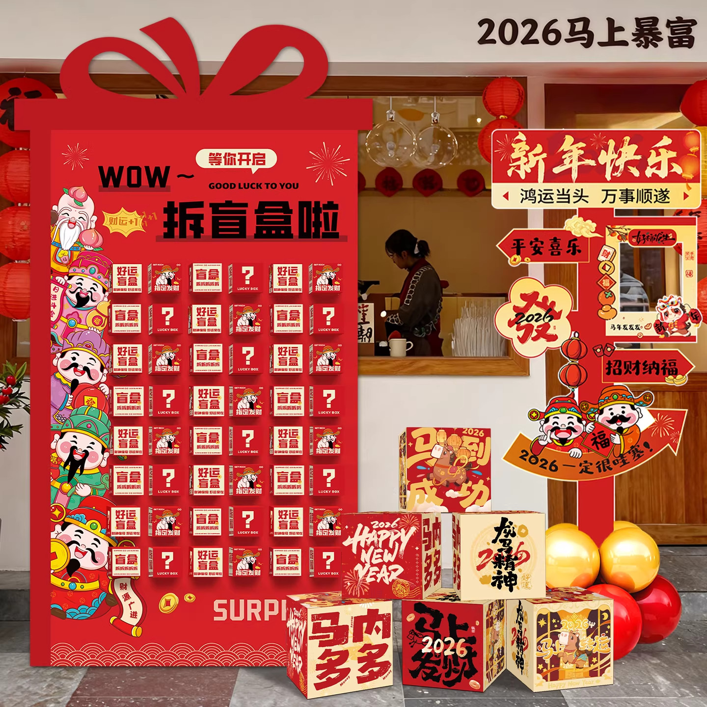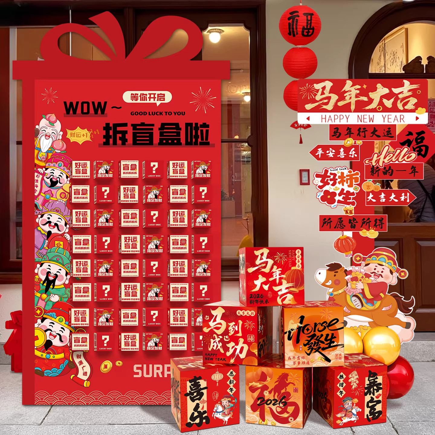 📚 2026马年过年春节公司单位新年装饰品氛围布置开门红气氛盲盒kt板