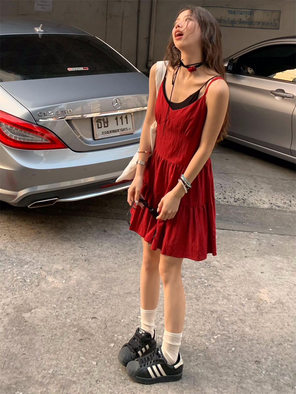 📚 荒荒家初恋吊带连衣裙2025夏季新款温柔风小众减龄褶皱a字短裙ins