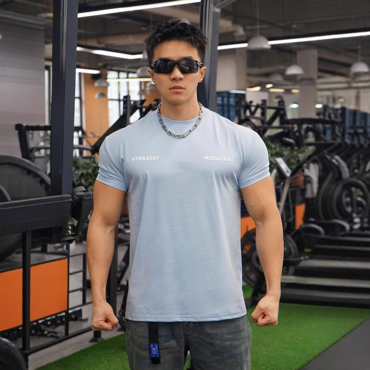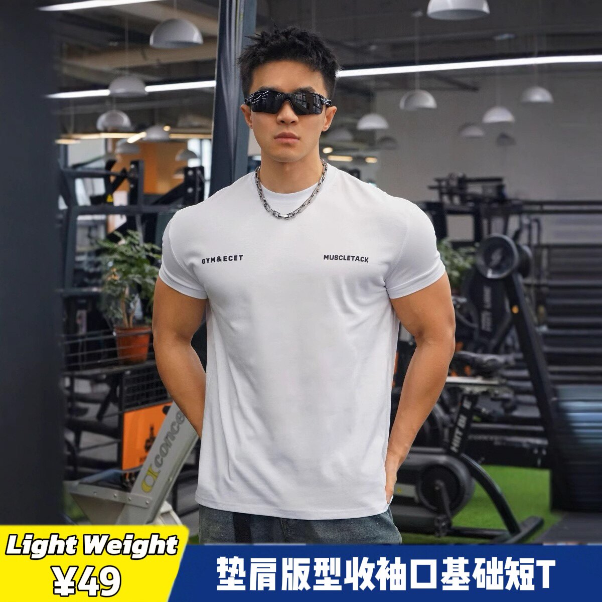📚 Light Weight夏季克隆棉显壮美式健身运动收袖口T恤垫肩速干短袖