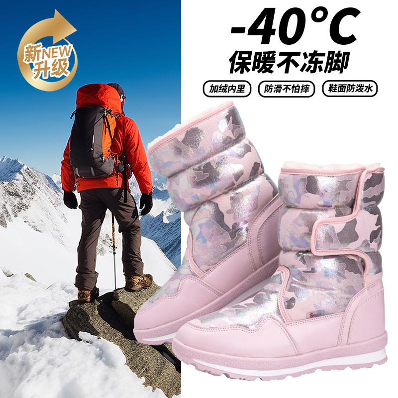📚 儿童雪地靴防水防滑皮毛一体女童2025新冬加绒加厚男童中大童棉鞋