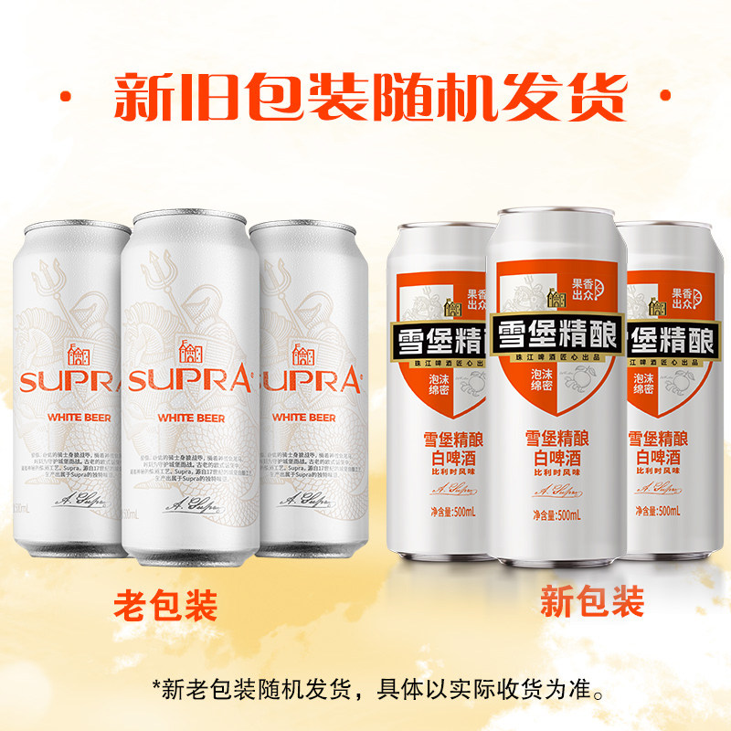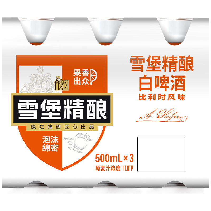 📚 珠江啤酒雪堡精酿11°P比利时风味白啤酒500ml*3罐卡包装易拉罐装