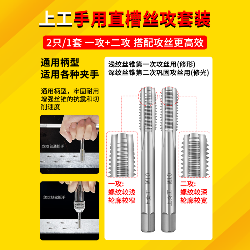 📚 上工手用丝锥丝攻螺纹丝锥手工直槽丝锥套装M3M4M5M6M8M10M12M14
