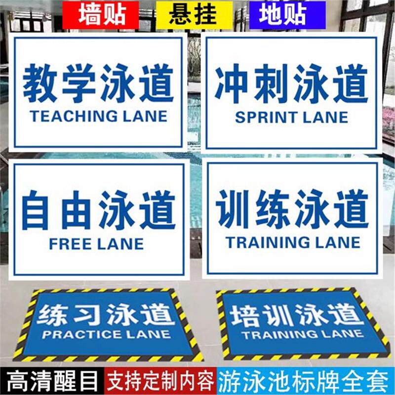 📚 练习泳道自由泳道培训泳教学泳道训练泳道长游泳道快速泳道冲刺泳道游泳馆标识牌墙贴泳池挂牌防滑地贴定制作