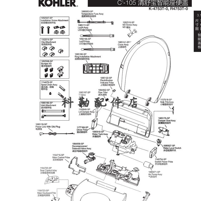 📚 科勒配件电子马桶智能盖板上盖铰链座便盖1085135清舒宝4737