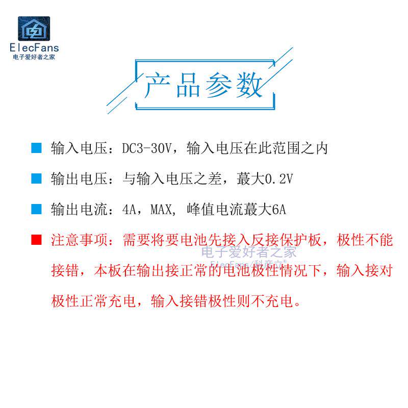 📚 电池充电防反接保护板 理想二极管 防止极性接反模块 4A电流 共地