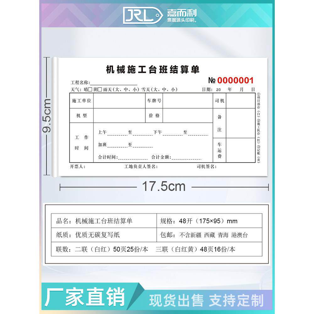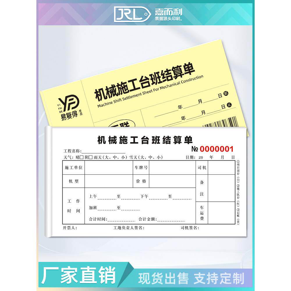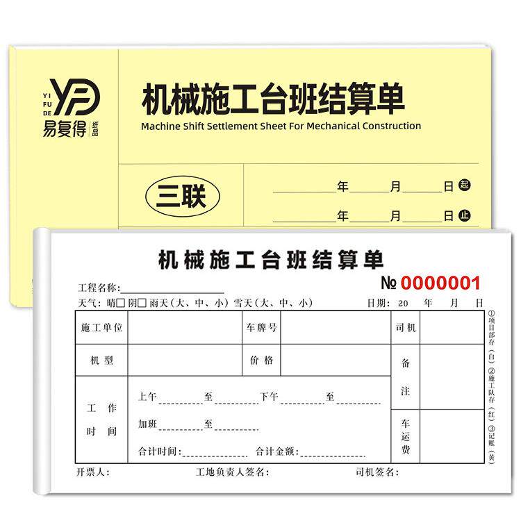 📚 机械施工作业单挖掘机钩机工时单定制印刷吊车签证单台班结算单据