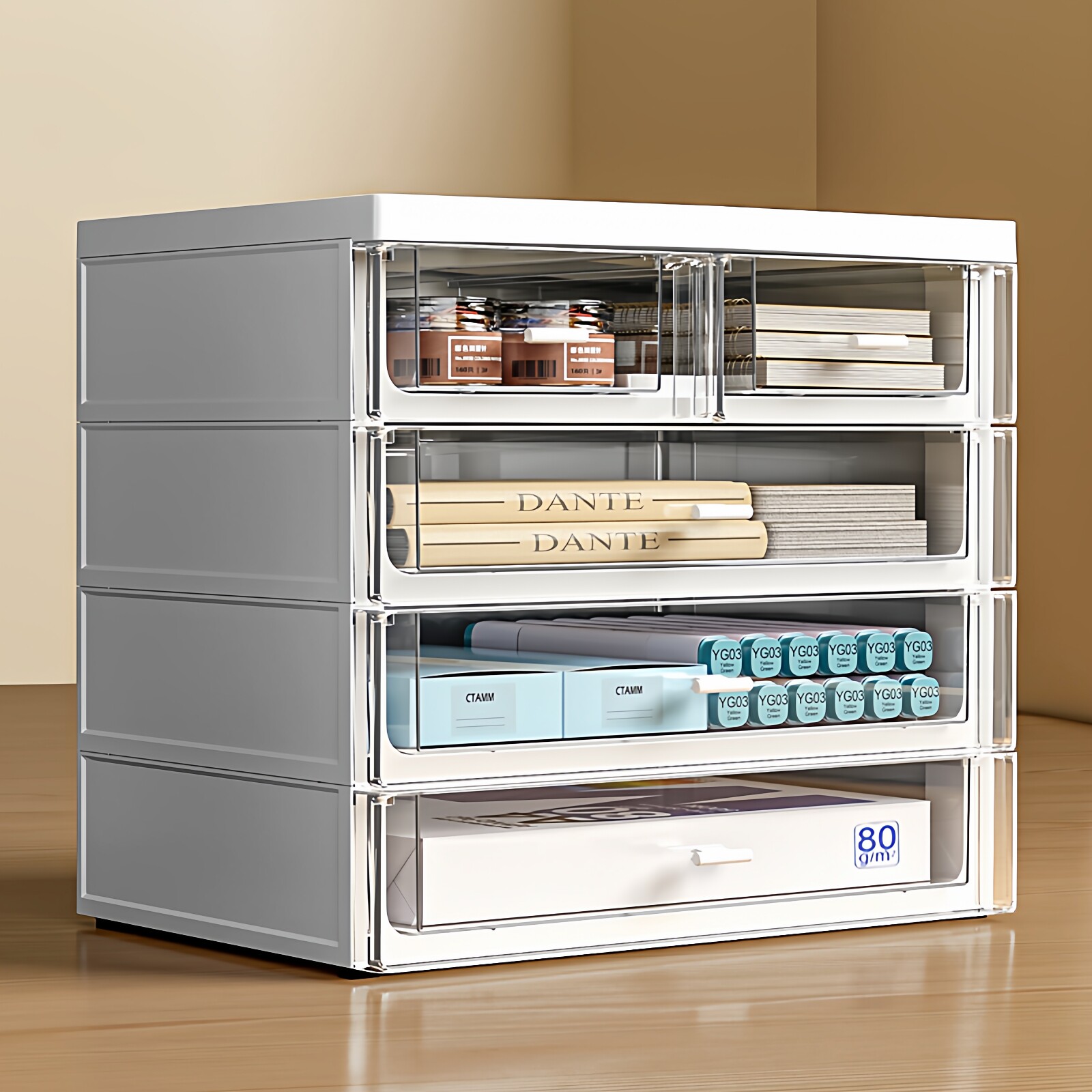 📚 桌面收纳盒抽屉式小把手办公室A4文件储物柜办公桌上杂物置物架子