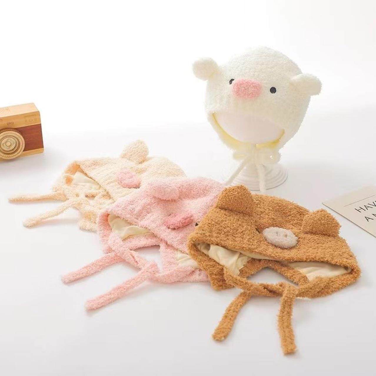 📚 婴儿帽子秋冬季宝宝毛线帽儿童护耳帽珊瑚绒可爱针织男童女童冬款