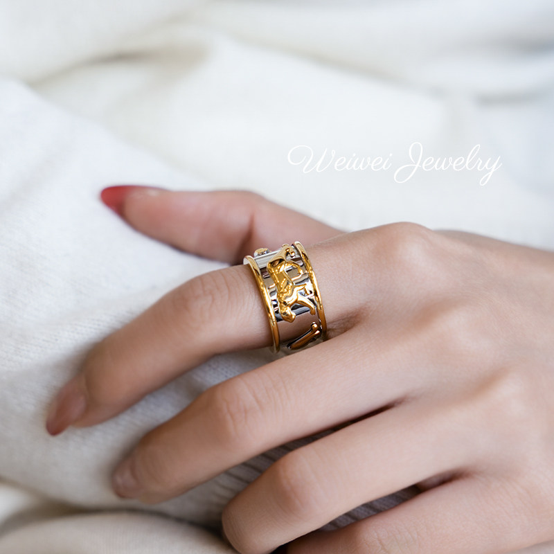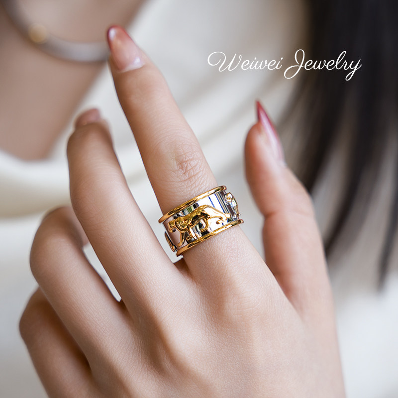 📚 高定珠宝S925纯银镀金卡家中古老钱豹子重工款银戒指小众设计款