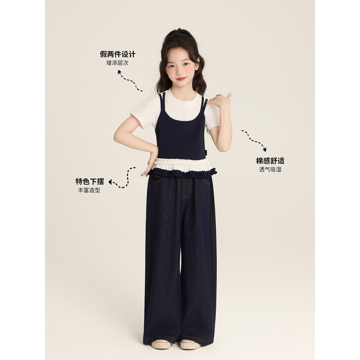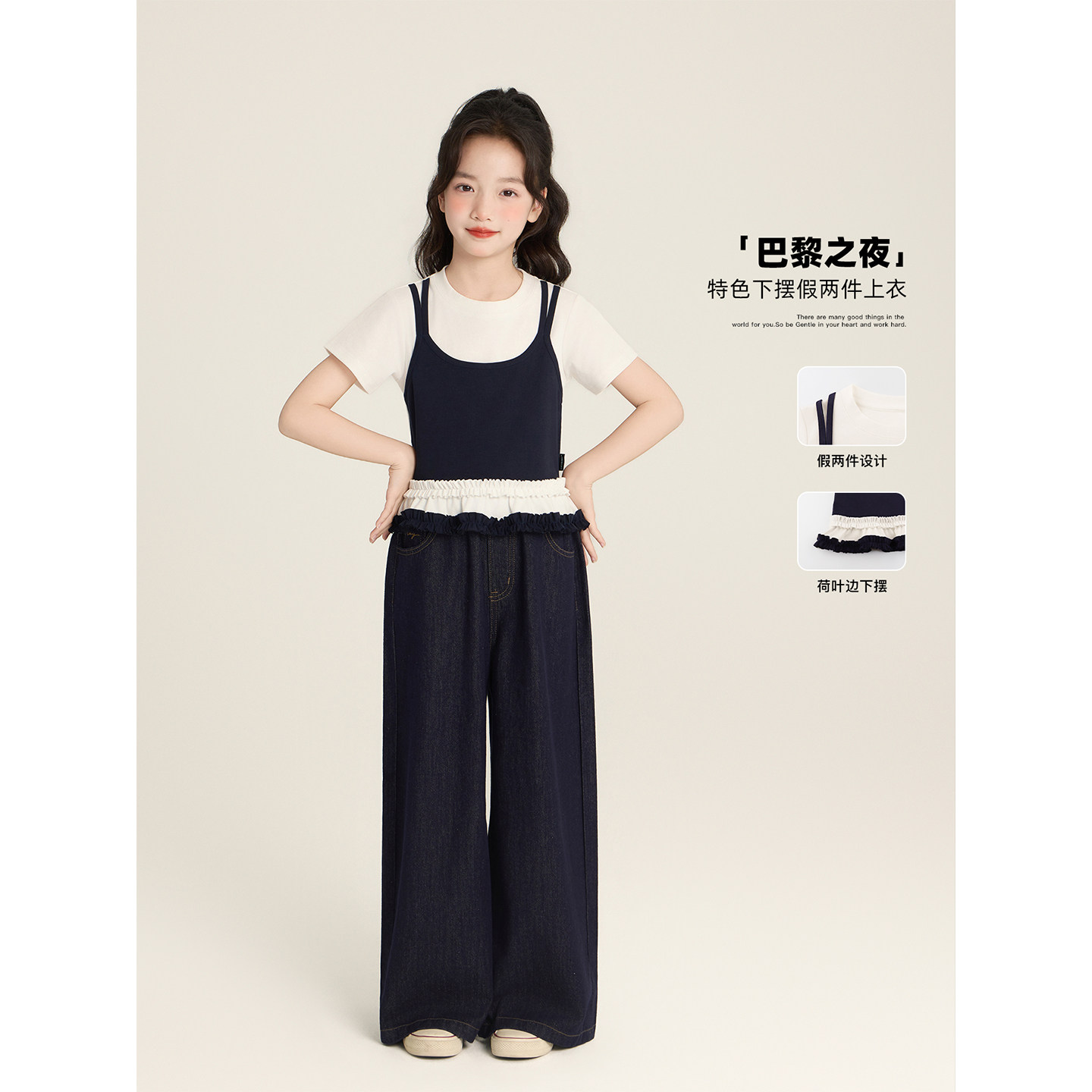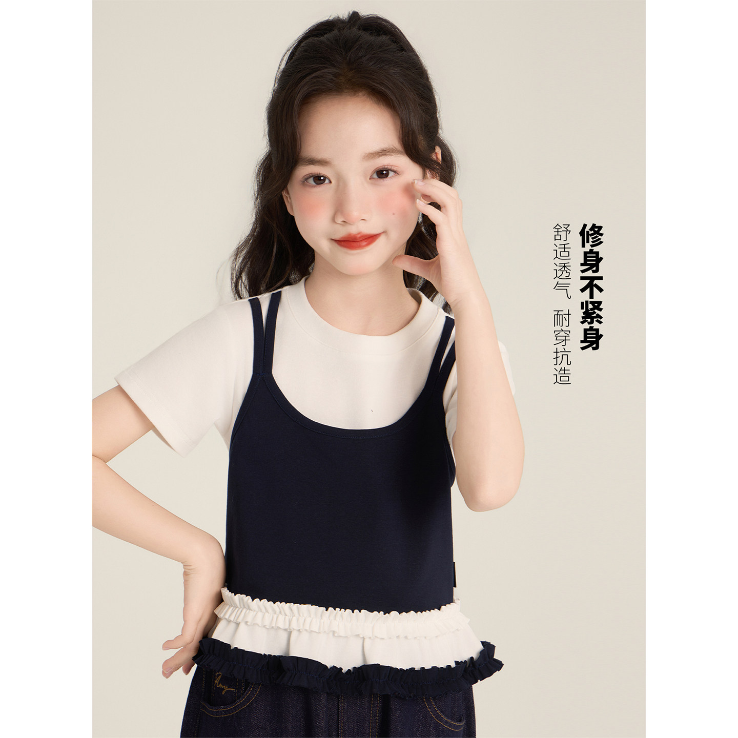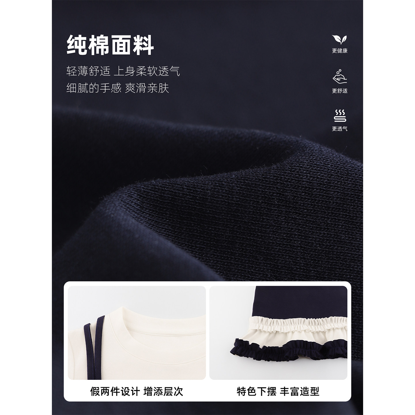 📚 Amybaby女童上装春季2026新款法式洋气时髦撞色荷叶边假两件上衣