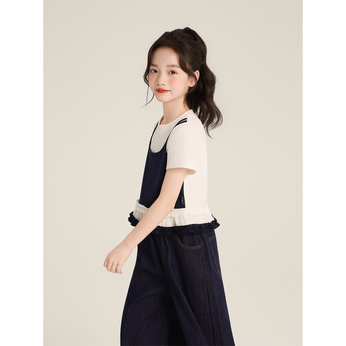 19¥ HU591 iH2n58BByjr¥ https://m.tb.cn/h.it033UW Amybaby女童上装春季2026新款法式洋气时髦撞色荷叶边假两件上衣 --------------------- 【原售价】65元 【现售价】65元。