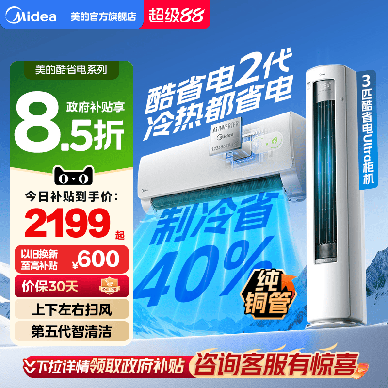 47¥ HU108 TM4T565whrS¥ https://m.tb.cn/h.ipmwqbj 美的空调新一级能效家用大1.5匹2匹变频冷暖挂机2026款酷省电二代 --------------------- 【原售价】5,999元 【现售价】4,999元。