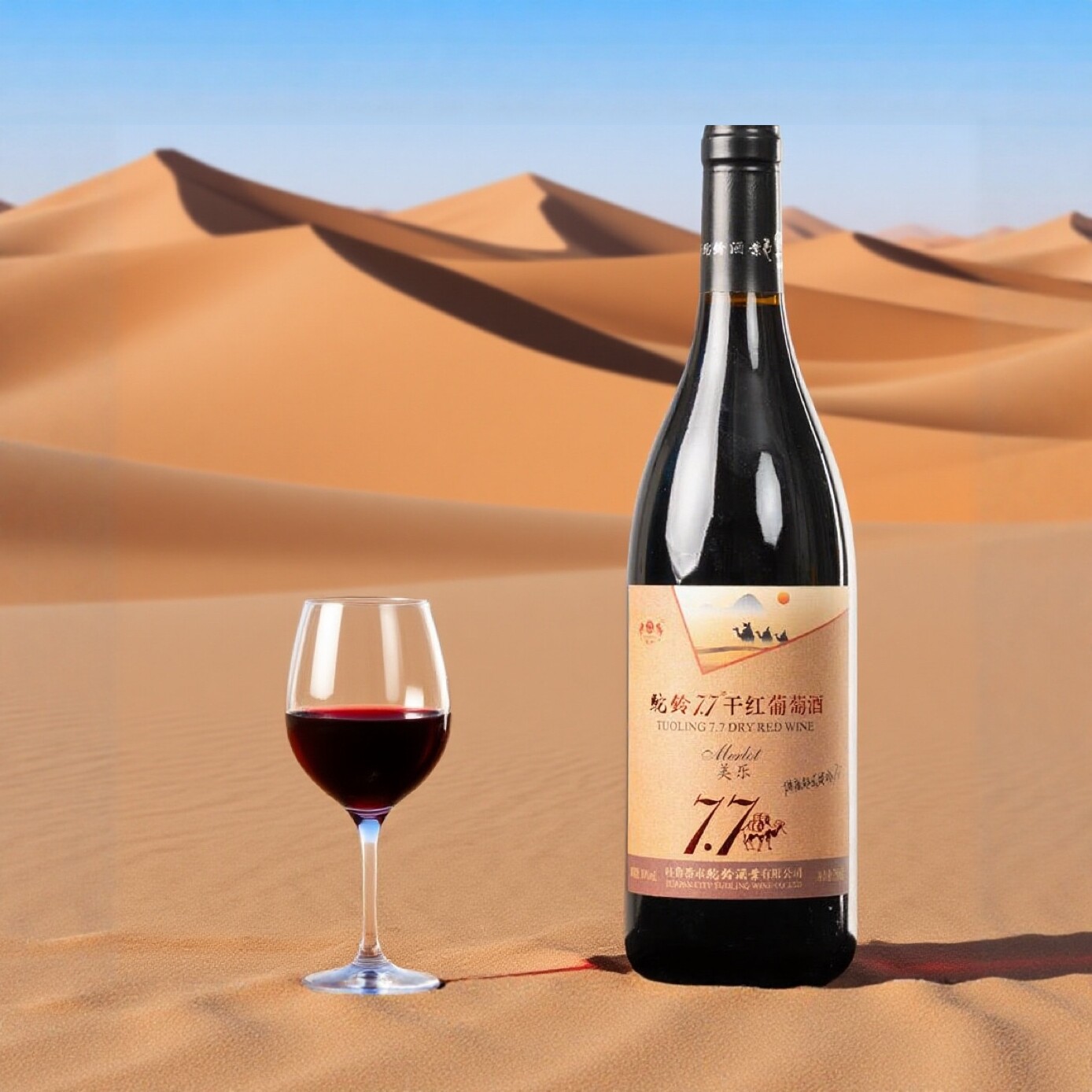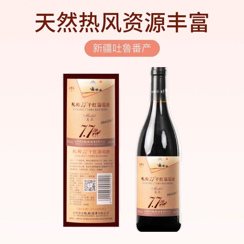 📚 【驼铃酒庄直营】7.7美乐干红葡萄酒10度红酒吐鲁番特产750ml微醺