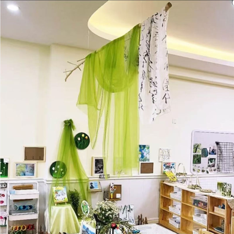 📚 幼儿园春天主题墙绿色网纱空中吊饰环创材料装饰布置挂饰隔断国风