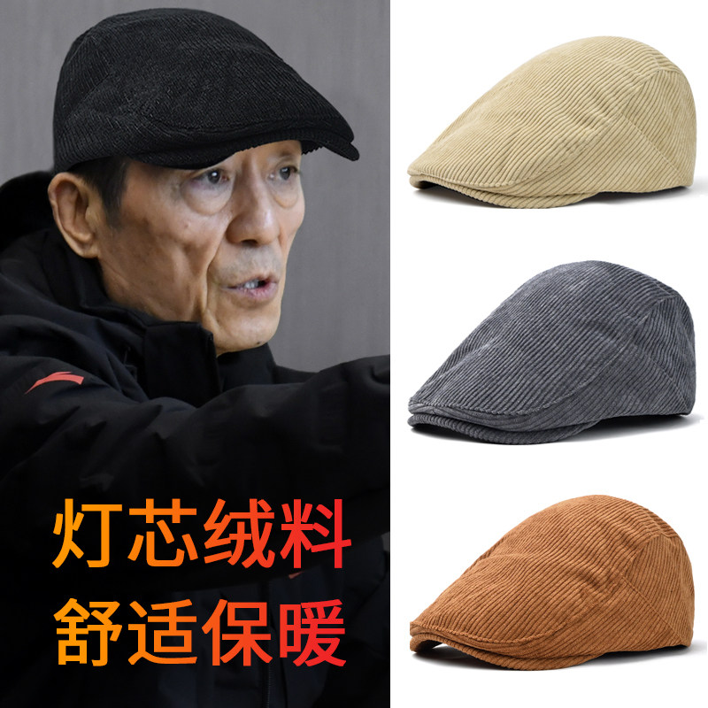 📚 灯芯绒贝雷帽男秋冬季英伦风鸭舌帽中老年加厚保暖大头围前进帽子