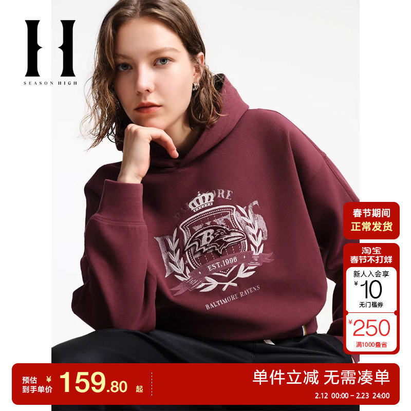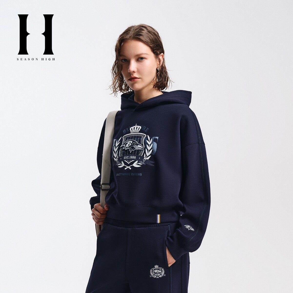 📚 绫致SEASON HIGH秋冬NFL联名巴尔的摩乌鸦队舒适连帽卫衣女