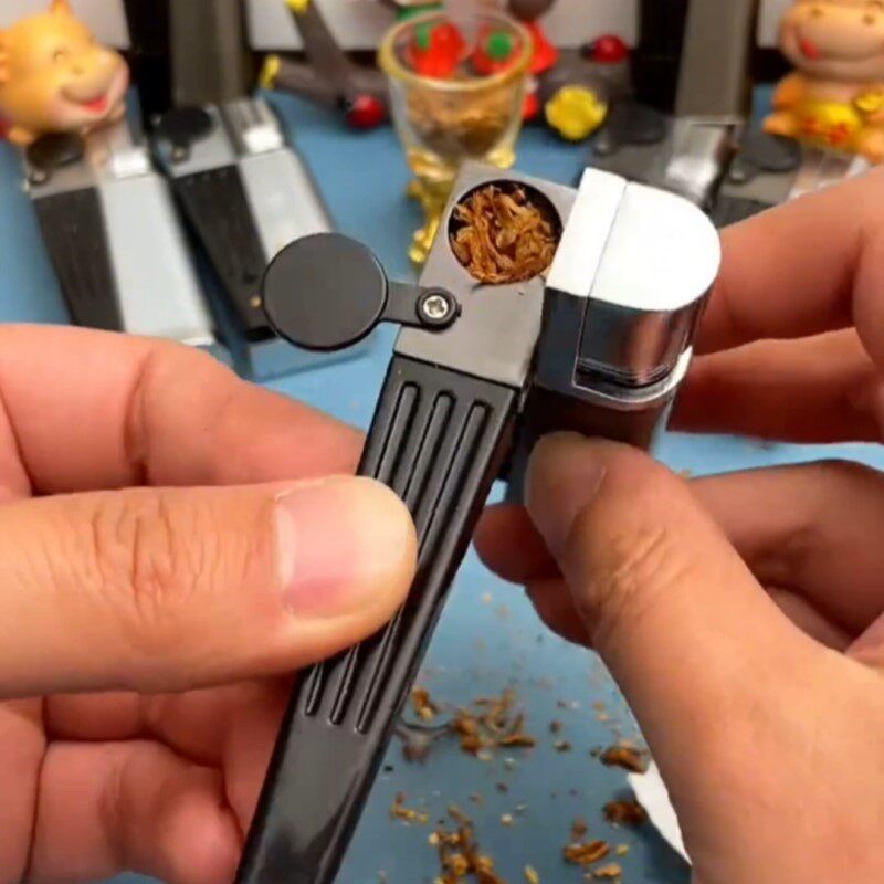 📚 新款折叠烟斗打火机一体式两用充气斜火创意个性复古便携小巧金属
