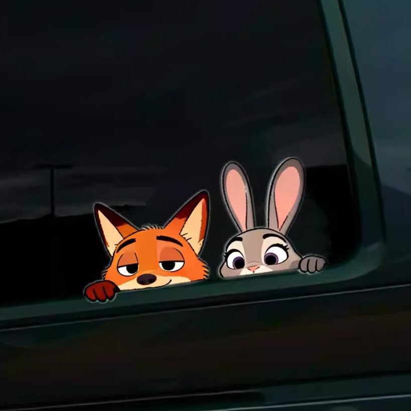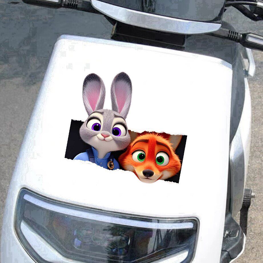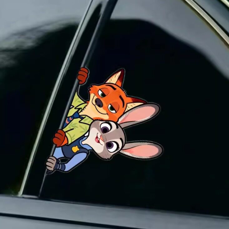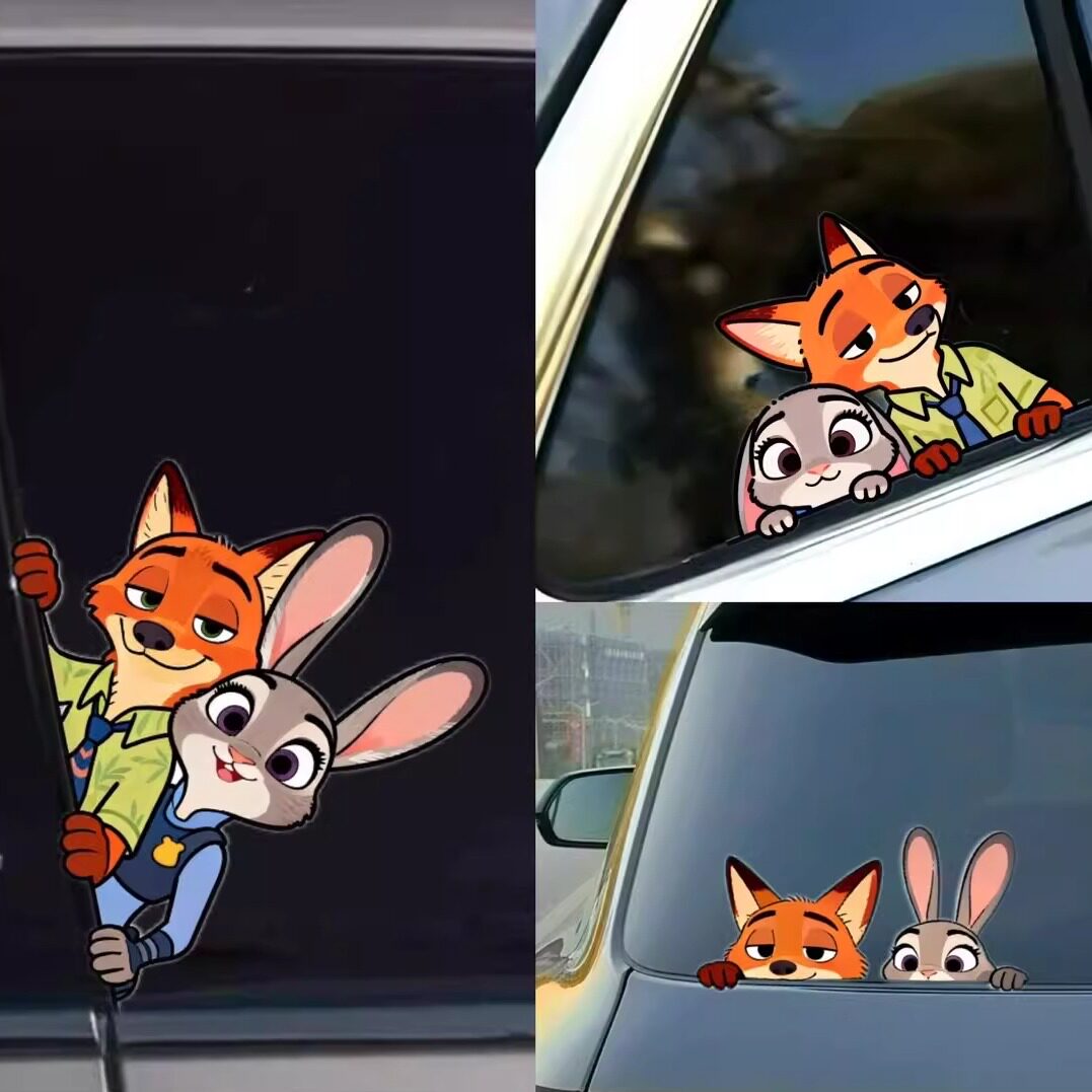 📚 疯狂动物城汽车贴纸朱迪尼克可爱创意车窗卡通贴画电动车划痕遮挡