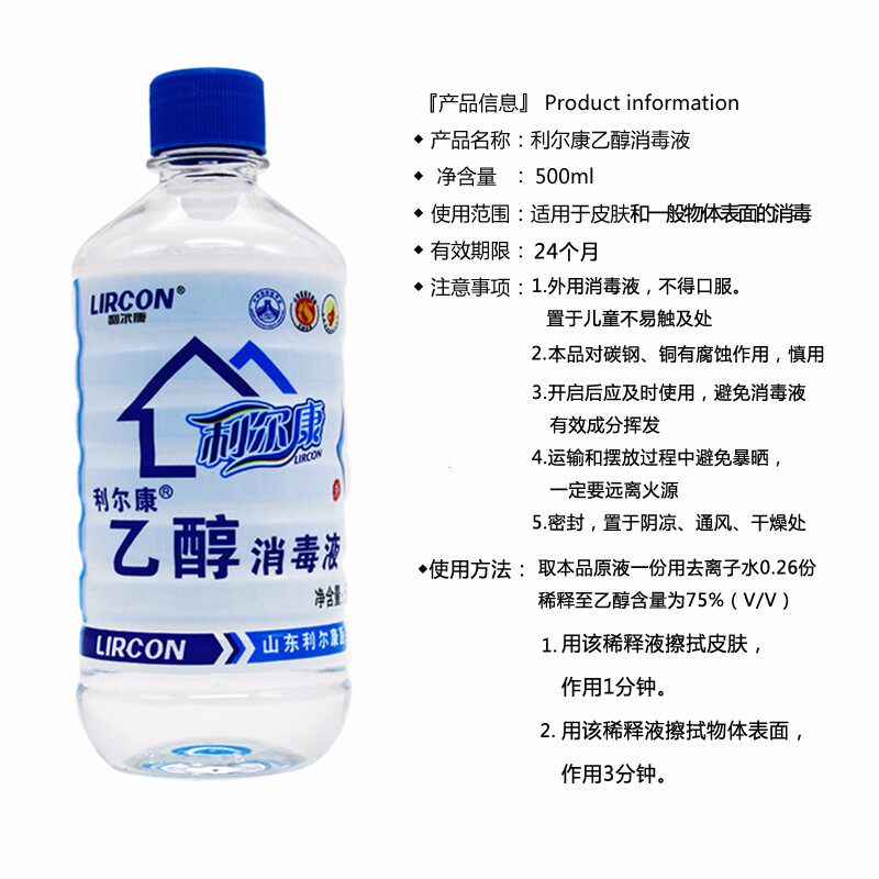 📚 利尔康95%医用消毒液500ml火疗拔火罐燃烧可燃纯粮食95度酒精乙醇