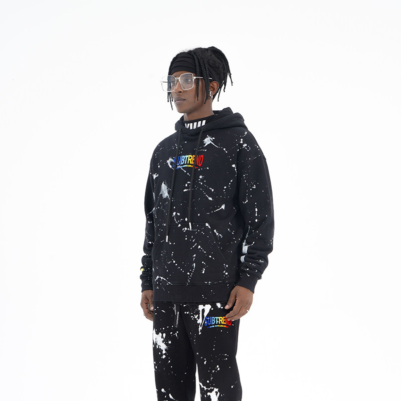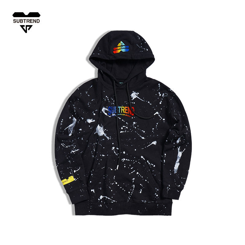 📚 意大利SUBTREND秋季新款潮酷成衣泼漆黑色连帽卫衣S3FU05110