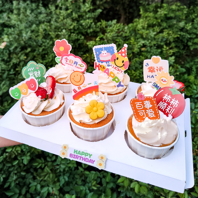📚 纸杯蛋糕装饰插件冰淇淋寿司热奶宝插旗甜品插卡圣诞节快乐摆件