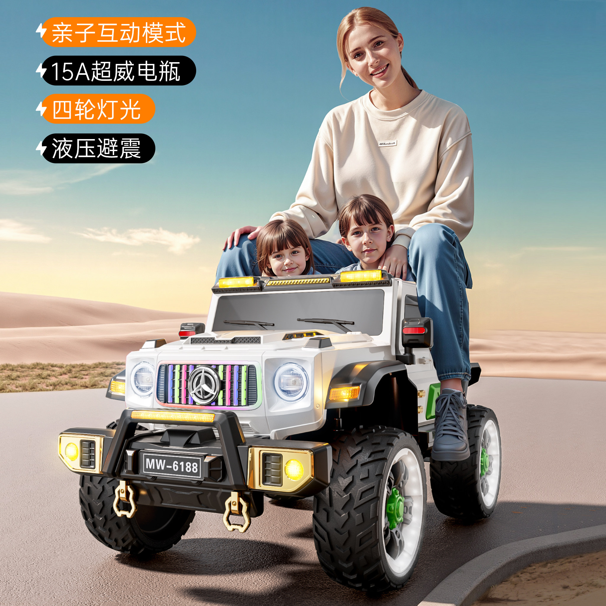 📚 儿童电动车双人可坐大人越野车宝宝遥控汽车婴幼小孩四轮玩具童车