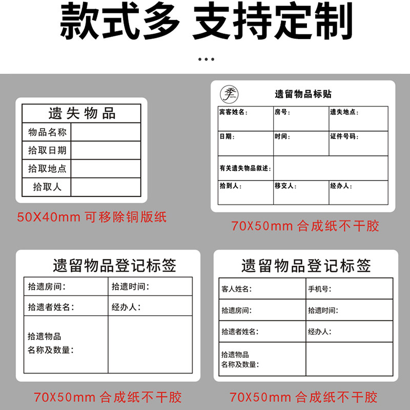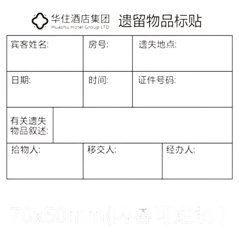 📚 遗留遗失物品标签不干胶标贴带胶通用版华住首旅如家酒店宾馆宾客