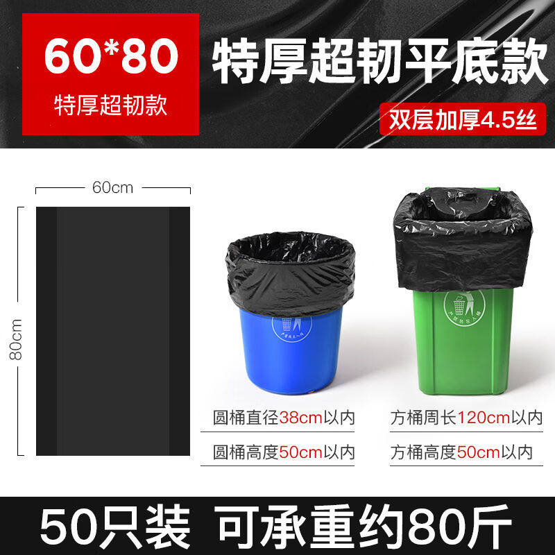 📚 谐晟高韧性黑色平口垃圾袋酒店物业环卫大号塑料袋60cm*80cm加厚4