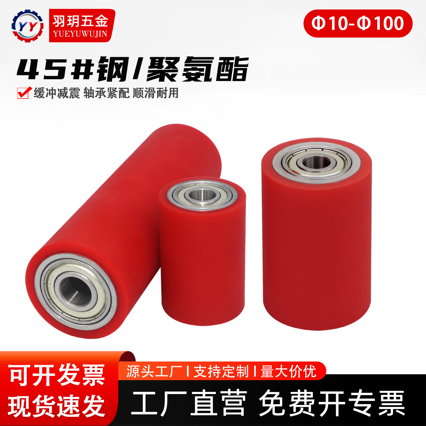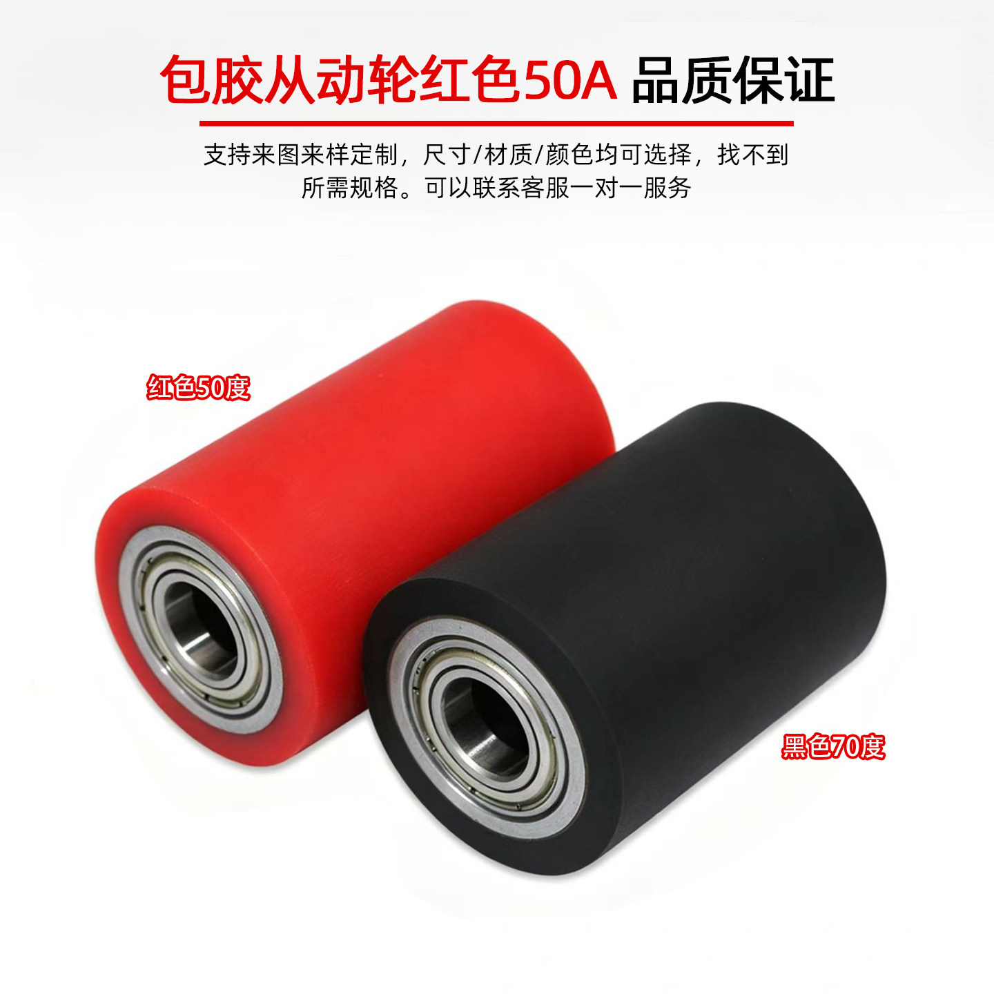 📚 聚氨酯包胶滚筒红色50A软胶无动力双轴承型滚轮橡硅胶压轮托辊