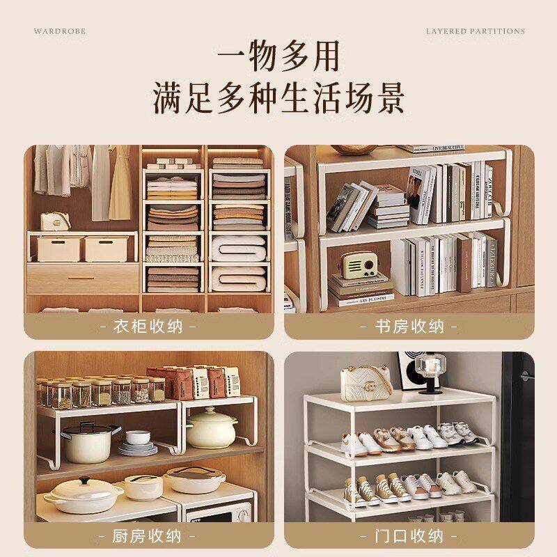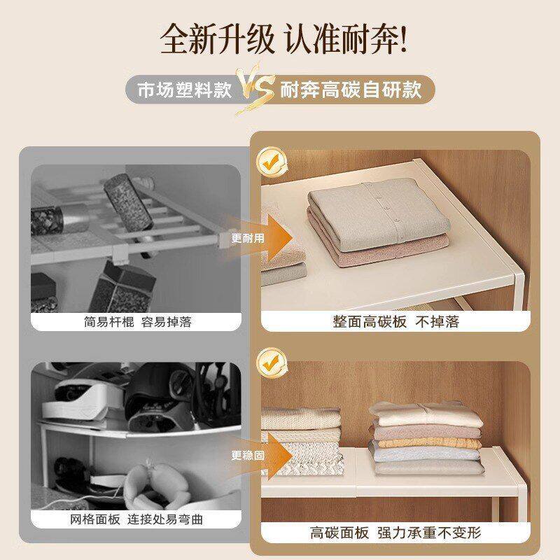 📚 衣柜分层隔板收纳架柜子橱柜内伸缩置物架衣橱碳钢分层架