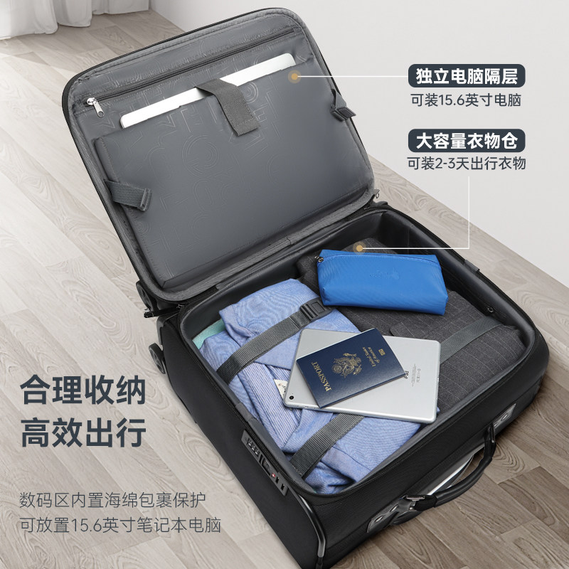 📚 CROSSGEAR十字勋章瑞军士刀牛津布前置开口18寸旅行李拉杆密码箱