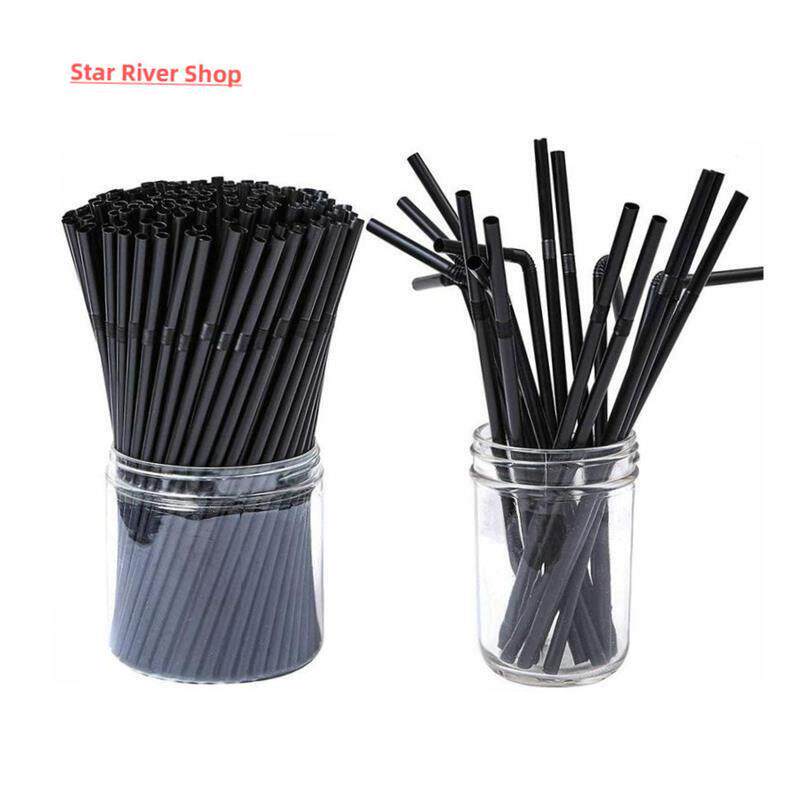 📚 100pcs/Set Black Cocktail Straws Black Plastic Straw For Bir