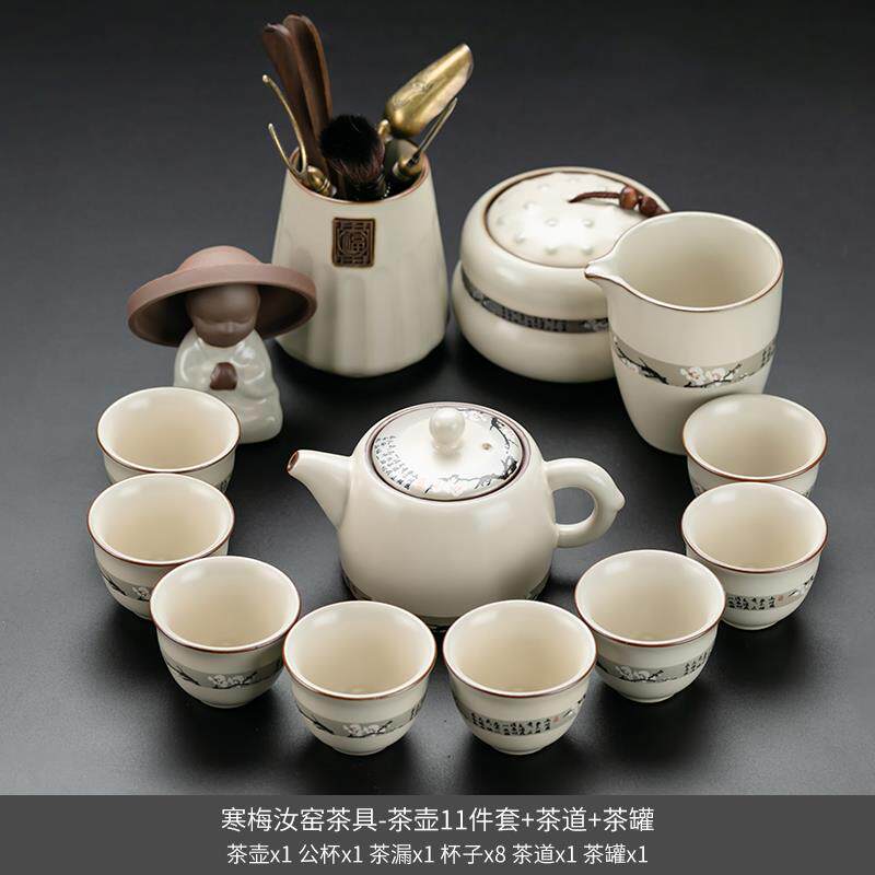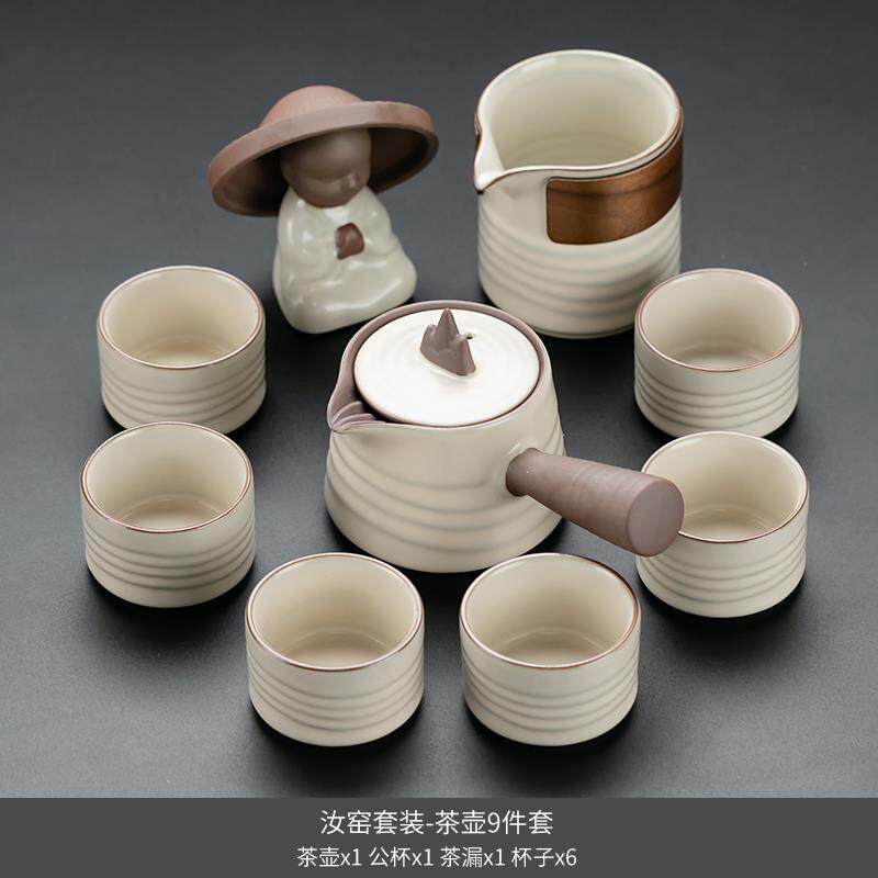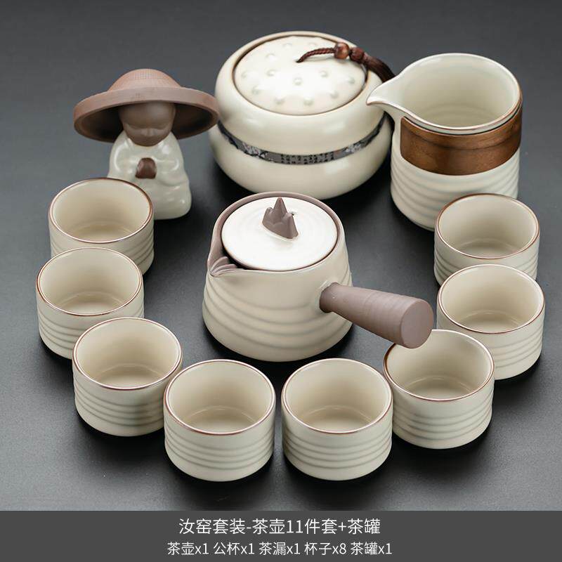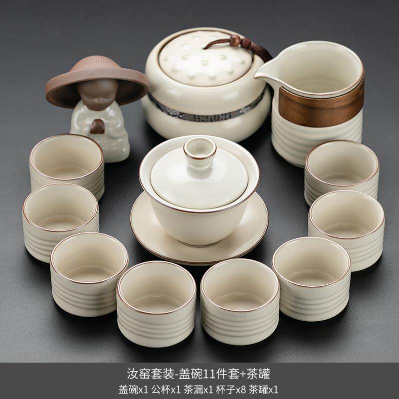 📚 高档汝窑功茶具三防烫侧把夫壶茶杯整套泡茶家用才盖碗喝茶米器色