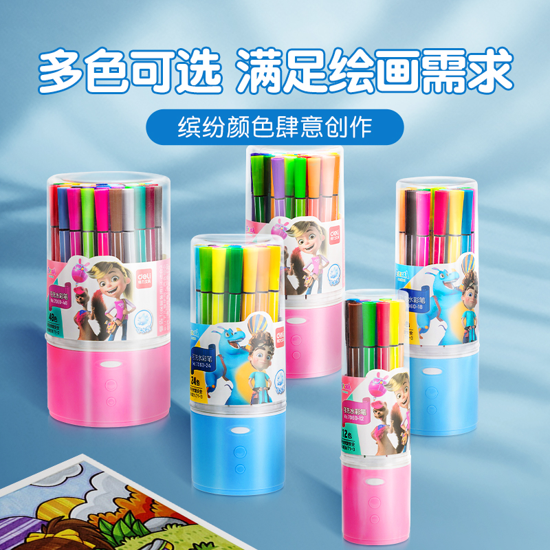 📚 得力可水洗水彩笔套装24色儿童幼儿园小学生美术绘画涂鸦笔彩色笔