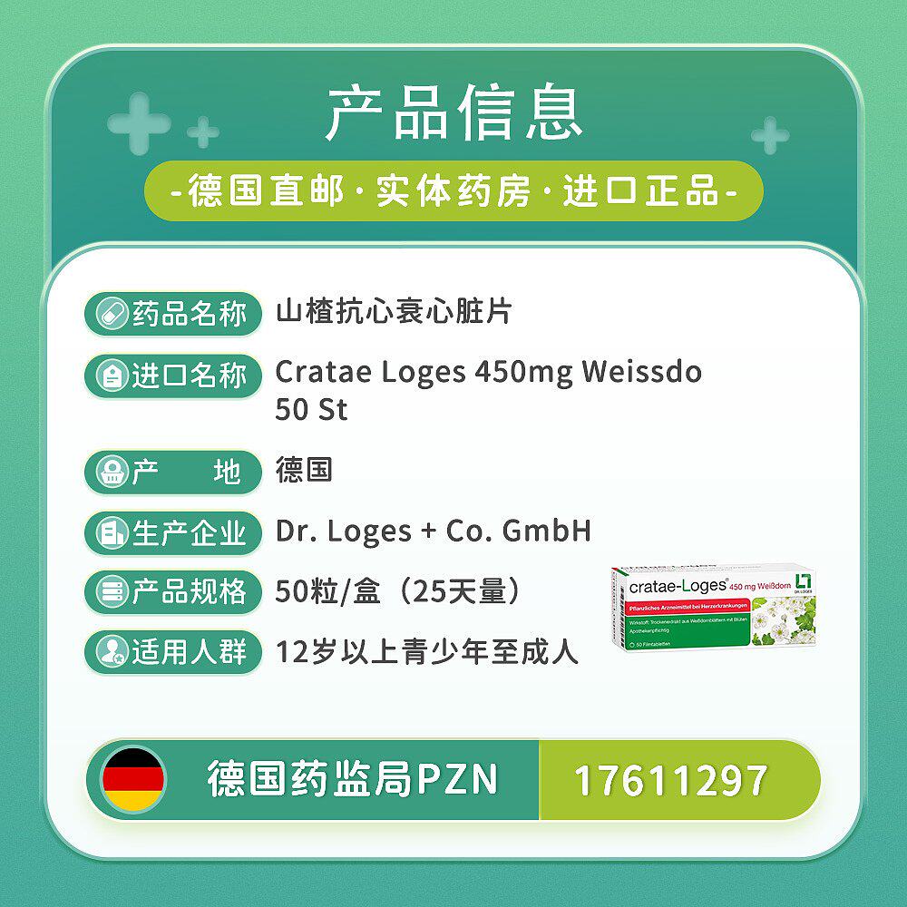📚 欧洲直邮德国药房loges山楂抗心衰心脏供血心肌护心气喘片50粒