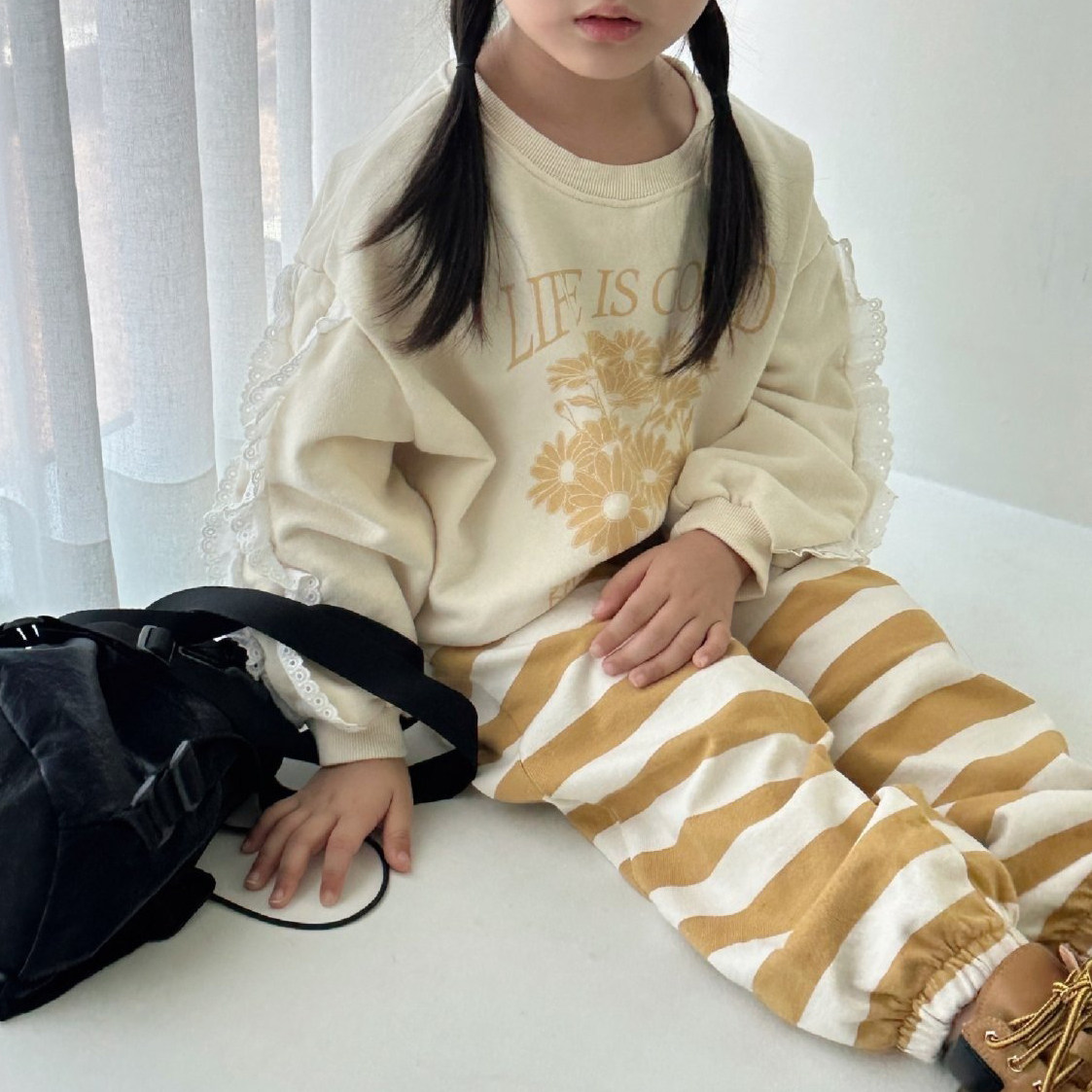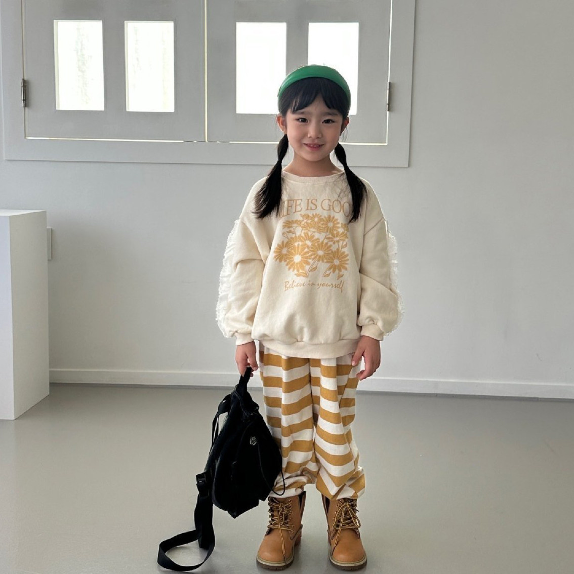 📚 Hans▲BabyWe韩国童装女童春秋甜美手绘花朵纯棉柔软卫衣上衣