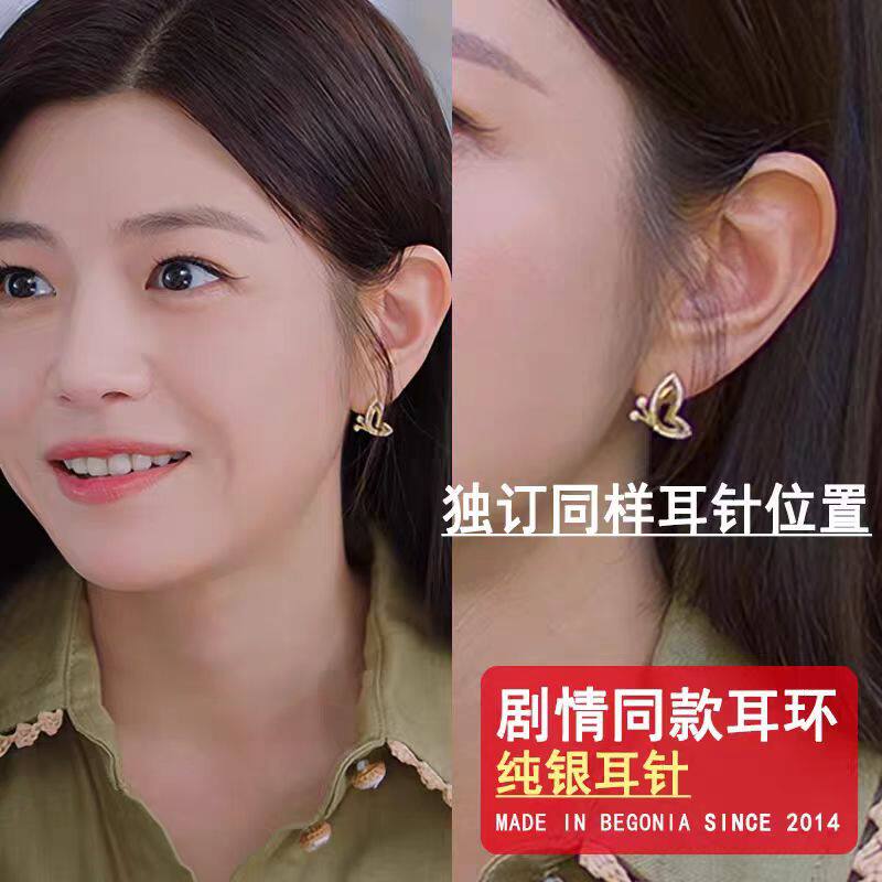 📚 狙击蝴蝶岑矜同款耳环 陈妍希爱心蝴蝶白贝母耳钉长款流苏耳饰女
