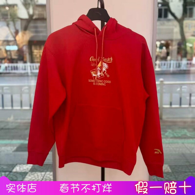 📚 安踏好事发生丨新年款红色连帽卫衣男宽松长袖上衣152618707S