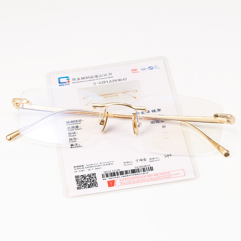 📚 18K金眼镜框男无框 真金子眼镜架商务无边框 定制真黄金近视眼镜