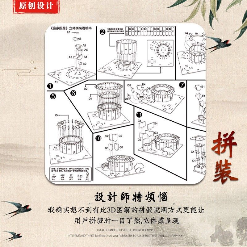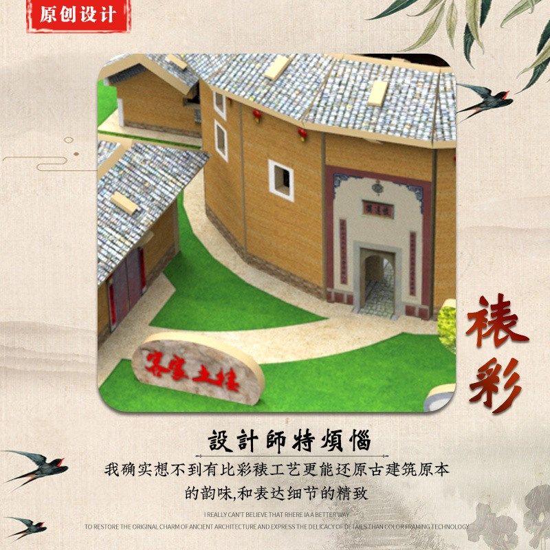 📚 古建筑积木福建客家土楼模型立体拼图学手工作业儿童礼物益智玩具
