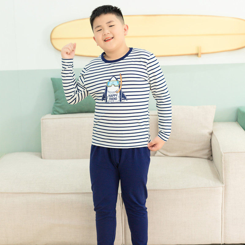 📚 胖男童秋衣秋裤套装薄款莱卡棉大童打底内衣男童宽松加肥青少年潮