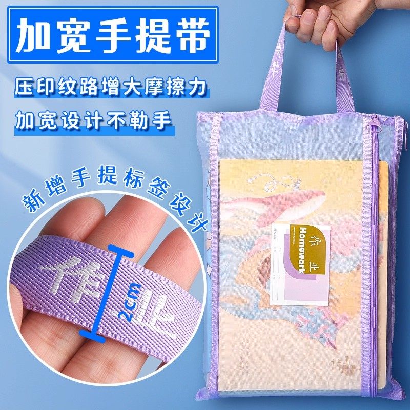 📚 晨光文件收纳袋小学生科目分类袋拉链式一年级作业书袋网纱袋a4试卷资料袋学科装书袋文具试卷学习补习手提袋