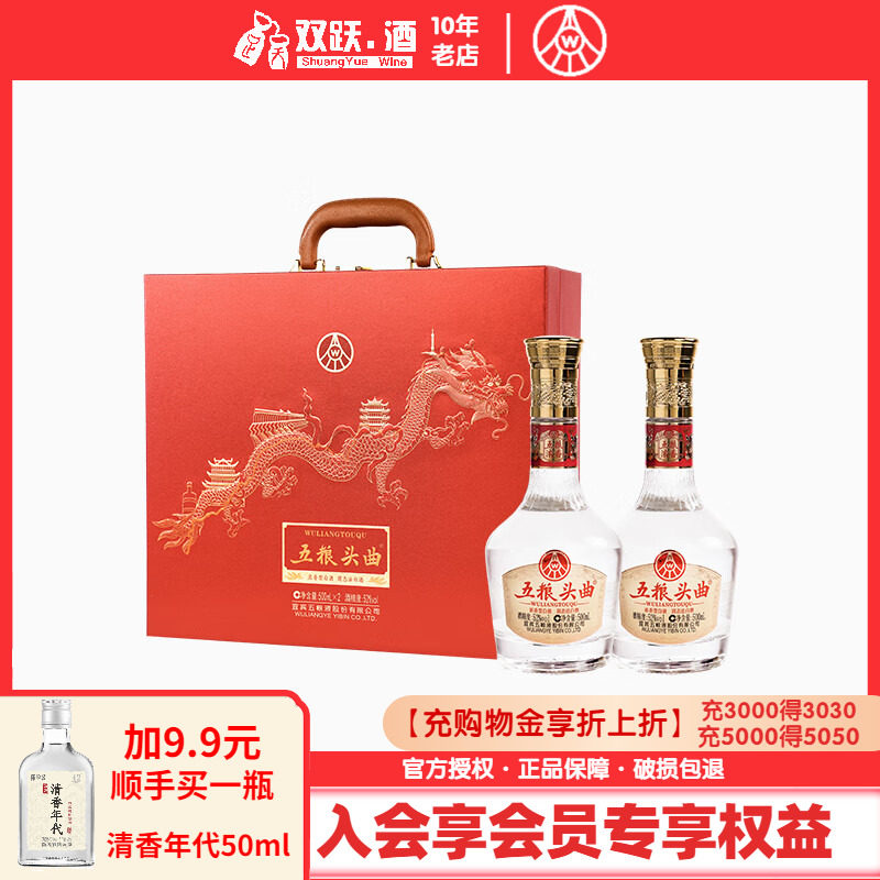 📚 五粮液股份五粮头曲长江礼盒52度500mL*2瓶礼盒装浓香型白酒