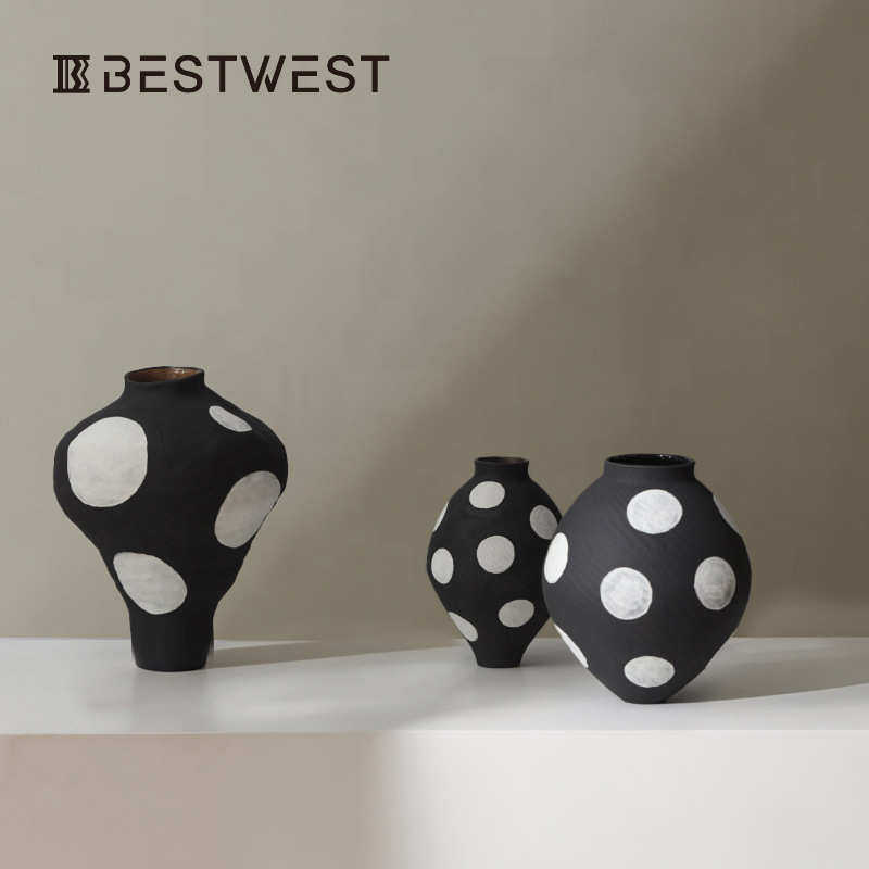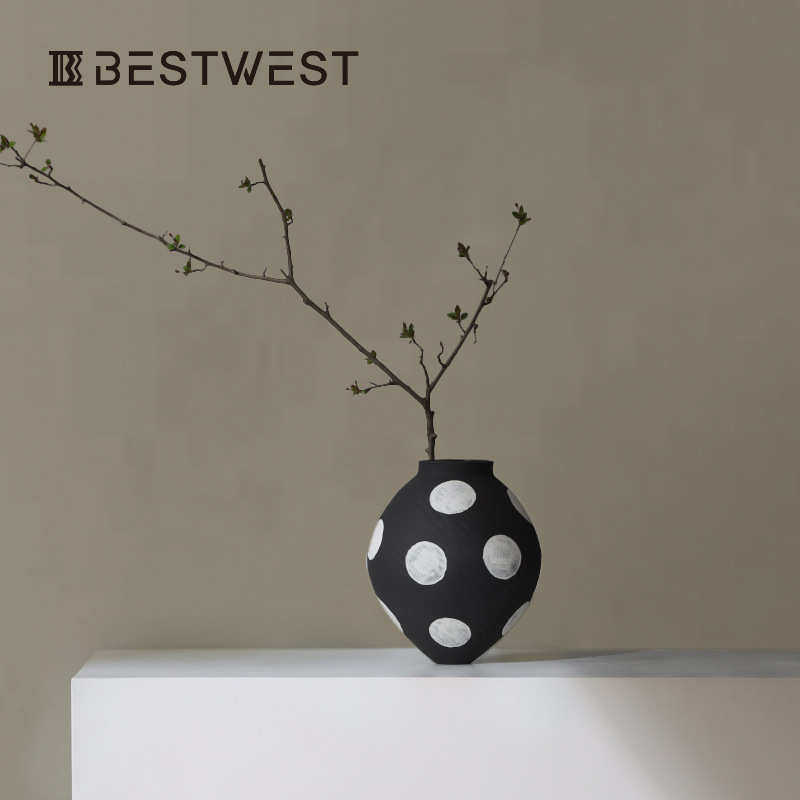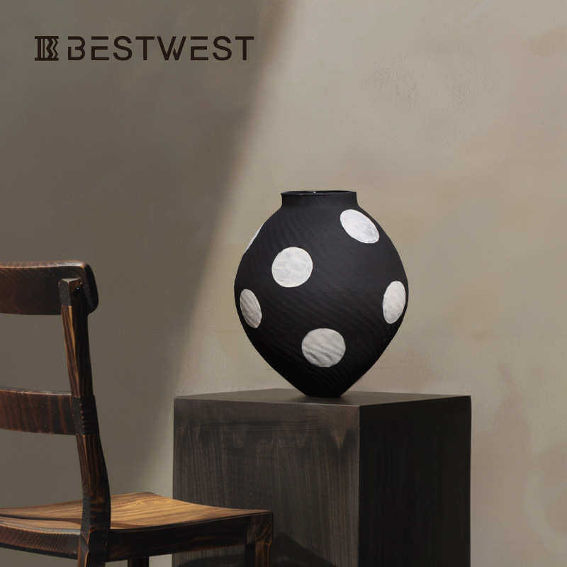 📚 博家居点 装手工瓶装摆件陶瓷家居简约花瓶插花饰现代西白波黑软