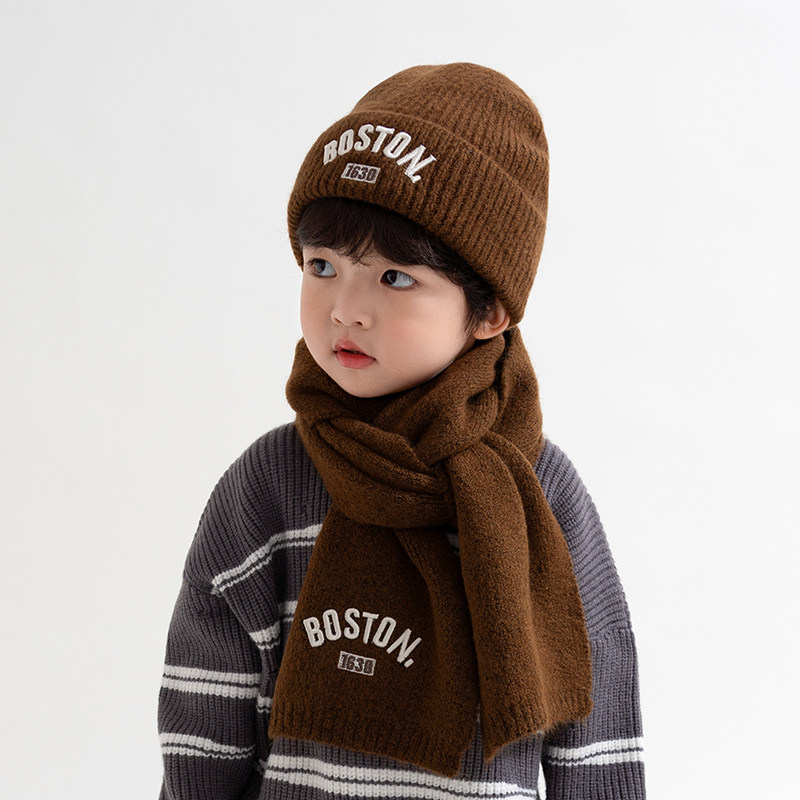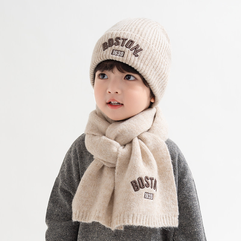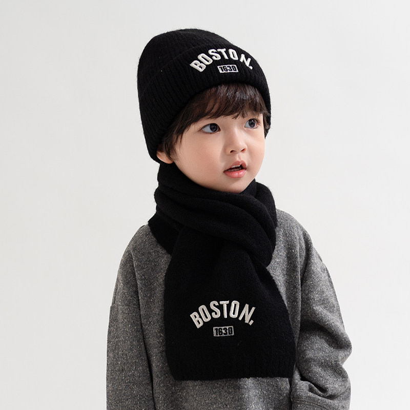 📚 秋冬季儿童帽子围巾套装男童针织帽毛线帽女童保暖护耳宝宝套头帽