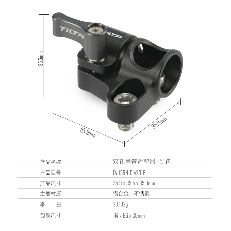 📚 TILTA铁头 双螺孔导管适配器 15mm管夹导轨卡件 防偏转