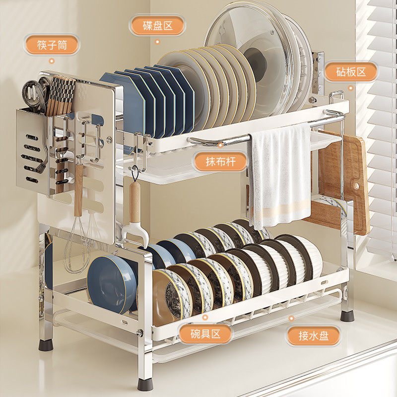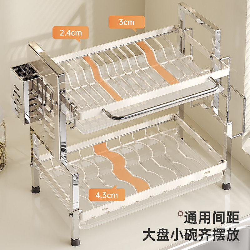 📚 加厚304不锈钢碗碟收纳架厨房多功能置物架沥水碗盘架子新款2025